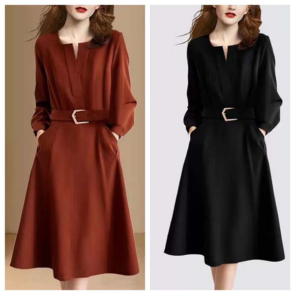 【連携キーワード】:ワンピース レディース 40代 春秋 膝丈ワンピース 長袖 Vネックワンピース 無地 ロング丈 Aライン 上品 韓国風 フォーマル 通勤 結婚式ドレス オシャレ 着痩せ