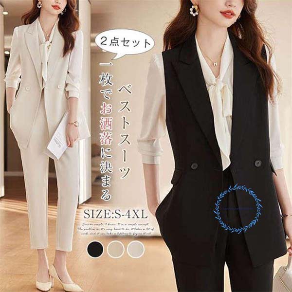 パンツセットアップ レディース 上下セット ロングパンツ ベスト ジレ スーツベスト パンツスーツ セットアップ 洗える パンツドレス ロングジレ ロングベスト テーパードパンツ 通勤 OL セレモニー カジュアル フォーマル 入学式 卒業式 入園式 春 秋 夏 着回し