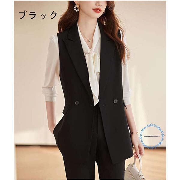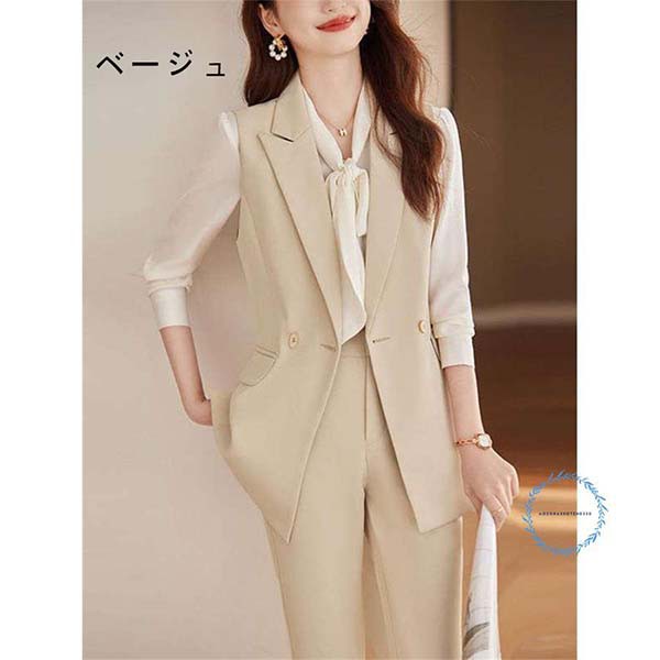 パンツセットアップ レディース 上下セット ロングパンツ ベスト ジレ スーツベスト パンツスーツ セットアップ 洗える入学式 卒業式 入園式 春 秋 夏 着回し