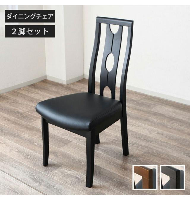 ダイニングチェア 2脚セット 椅子 チェア イス 北欧 木製 ラバーウッド 食卓椅子 ダイニング 合成皮革 リビングチェア モダンインテリア リビング おしゃれ ダイニング ブラック ブラウン(代引不可)【送料無料】