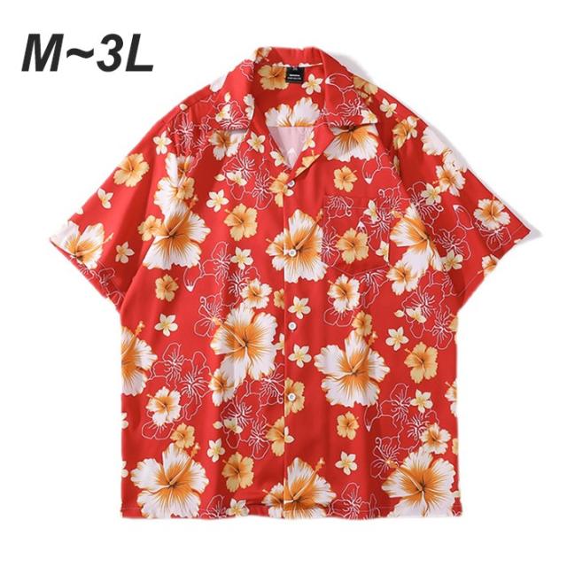 アロハシャツ ハイビスカス 総柄 赤 男女兼用 メンズ レディース カジュアル 半袖 柄シャツ 夏 海 開襟シャツ レッド ゆったり 涼しい おしゃれ 大きいサイズ ハワイアン 半袖シャツ 夏 夏服 ビーチ 海 涼しい 冷感旅行 リゾート 沖縄 mo004d7d7m6