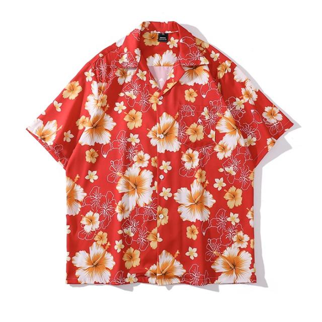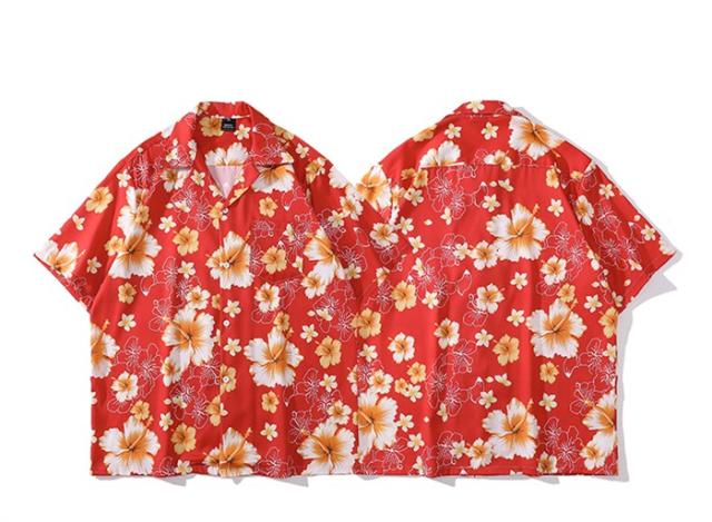アロハシャツ ハイビスカス 総柄 赤 男女兼用 メンズ レディース カジュアル 半袖 柄シャツ 夏 海 開襟シャツ レッド ゆったり 涼しい おしゃれ 大きいサイズ ハワイアン 半袖シャツ 夏 夏服 ビーチ 海 涼しい 冷感旅行 リゾート 沖縄