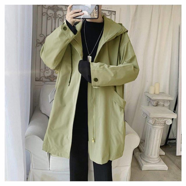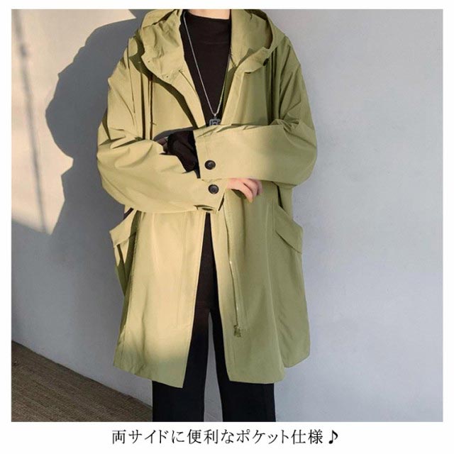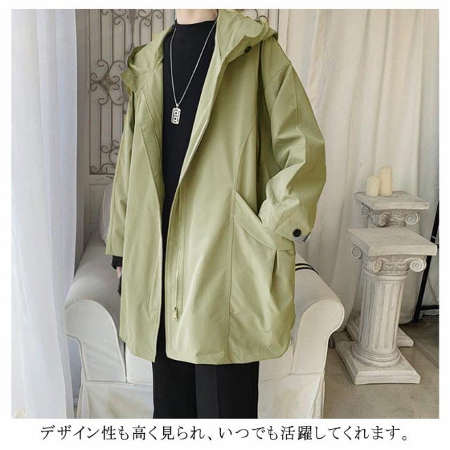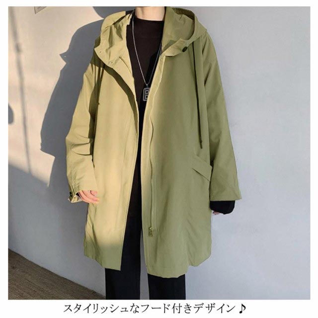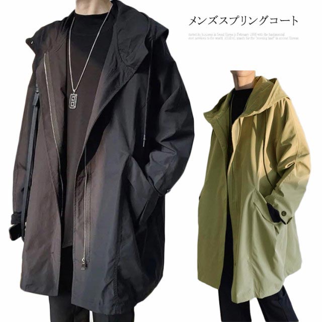スプリングコート メンズ メンズスプリングコート メンズコート フード付き 長袖 秋服 ライトアウター カジュアルコート ロング 大きいサイズ 通勤 膝上 ナチュラル 春秋