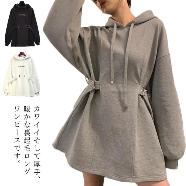 ワンピース レディース 長袖 きれいめ 秋冬 膝丈 パーカーワンピース フレアワンピース 裏起毛 ひざ丈 ロングパーカー トレーナー 厚手 長袖 着痩せ ゆったり 体型カバー お洒落 送料無料
