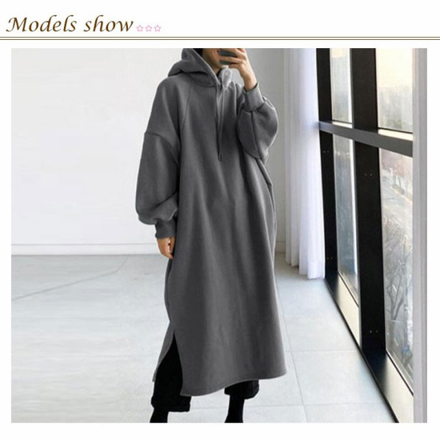 レディース パーカー 秋 春 冬 秋冬 長袖 スウェットワンピース ロング丈 スウェット ロングスカート パーカーワンピース 長袖 ロングパーカー 大きめ ぽっちゃり 服 体型カバー S M L XL 2XL 3XL 4XL 5XL