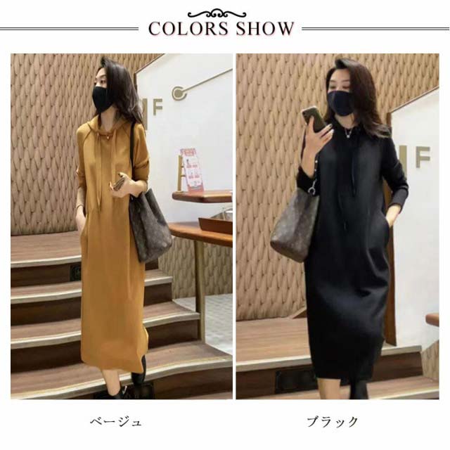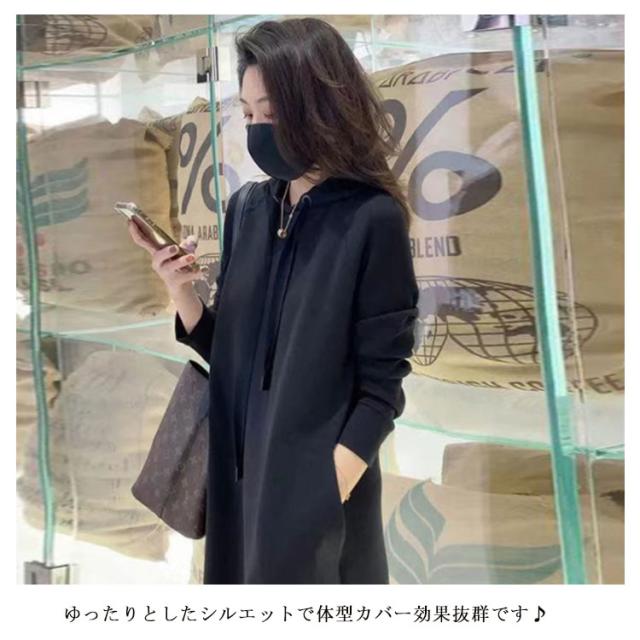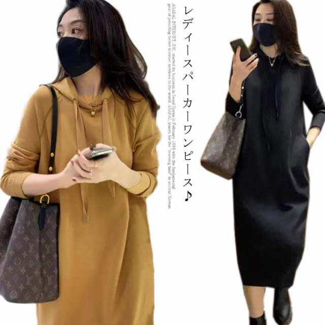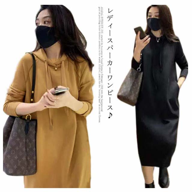 ワンピース ロングパーカー フード付き レディース パーカーワンピ ロング丈 ブルオーバー 体型カバー 厚手 無地 大きいサイズ 秋冬 お洒落 送料無料