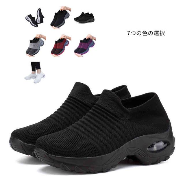 シューズ レディース 厚底 ランニング 靴 スリッポン 送料無料 軽量 インソール エアクッションスニーカー 幅広 歩きやすい ウォーキング 通気性 履きやすい 疲れにくい 外反母趾 超軽量 黒 白 スニーカー