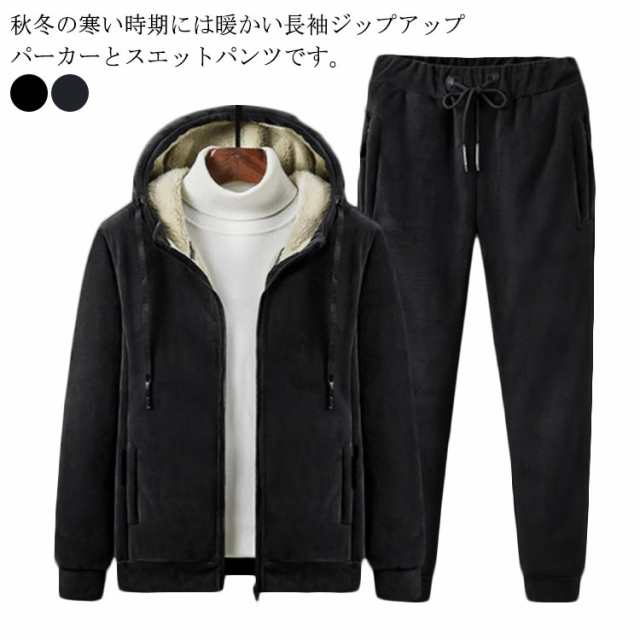 裏ボア スウェットパーカー メンズ 上下セットアップ 2点セット 暖かい スウェット上下セットアップ セットアップ 長袖 裏起毛 ジップアップ シンプル パーカー スウェット 上下セット