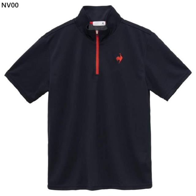 汗をかいても素早く乾く機能ハーフジップ半袖Tシャツ。