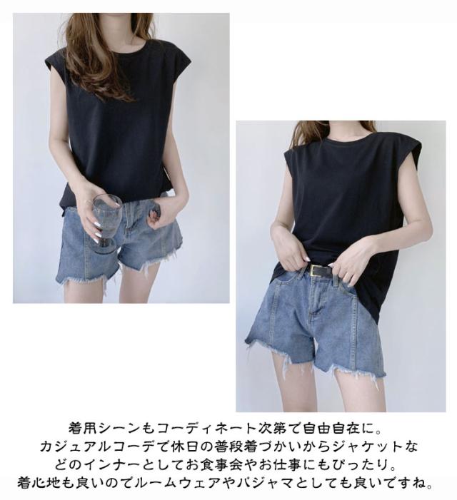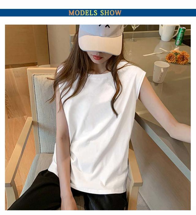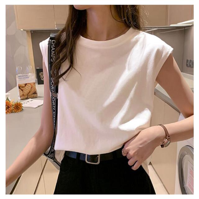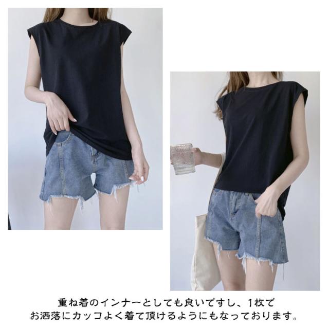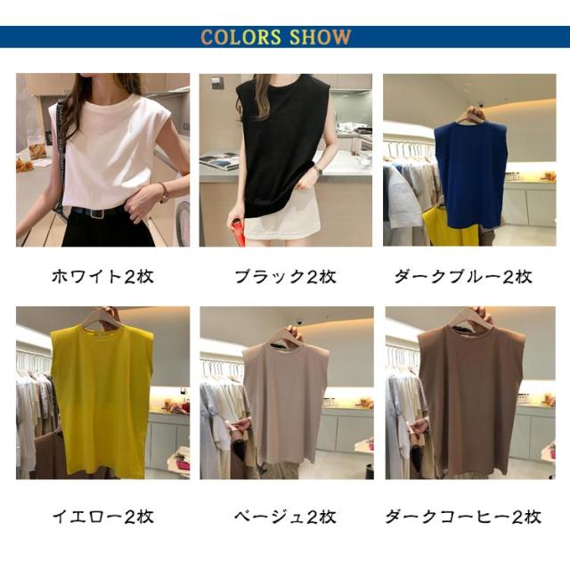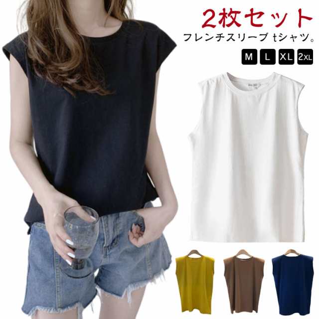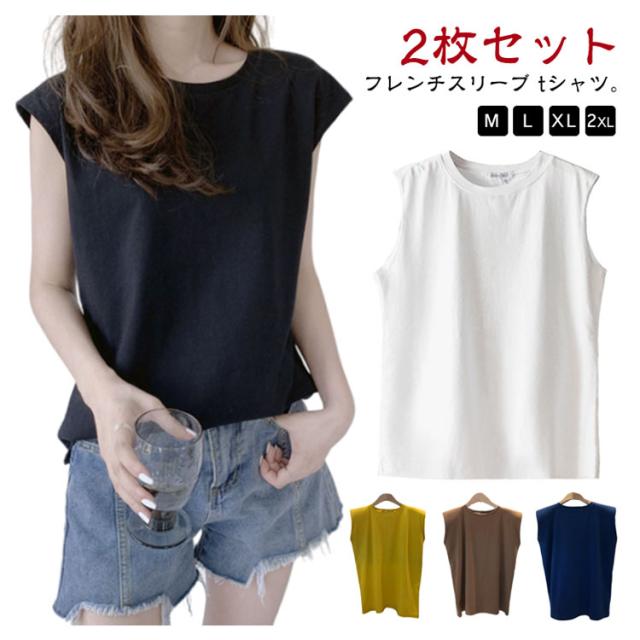 【2枚セット】フレンチスリーブ トップス Tシャツ Tシャツ ロングTシャツ キャミソール ロンT タンクトップ ゆったり 可愛い 【2枚セット】フレンチスリーブ クルーネック レディース ノースリーブ 無地 送料無料