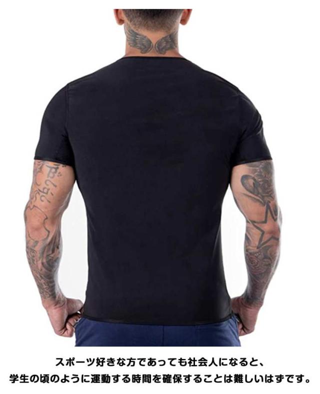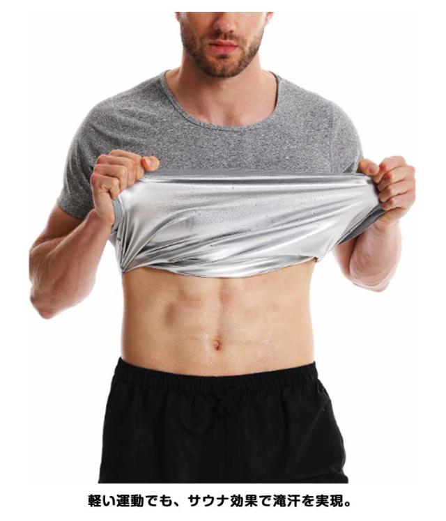 | 健康のためにもメタボを解消したいけど、まとまった時間がとれない・・・。 スポーツ好きな方であっても社会人になると、学生の頃のように運動する時間を確保することは難しいはずです。 そらなら短い時間でお腹周りの幅を減らせたらうれしいですよね? 運動時にこちらのサウナTシャツを着るだけで、ポリマー素材の保温効果で少し動くだけで発汗が促されます。 軽い運動でも、サウナ効果で滝汗を実現。 見た目は普通のTシャツですので、周りの目が気になりません。 また、コンプレッションタイプなので、アウターに響かないので、気になるようでしたら、インナーとしても活用することができます。 インナーとして使えば、普段と同じことをしているだけで、発汗が期待できます。 | |