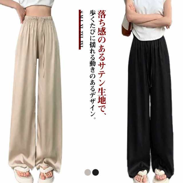 ルームウェア 夏 サテン サテン ロング丈 ボトムス サテンパンツ イージーパンツ 春 ワイドパンツ レディース パンツ ウエストゴム 冷感 春 夏 ひんやり 薄手 涼しい 軽い 接触冷感 着痩せ