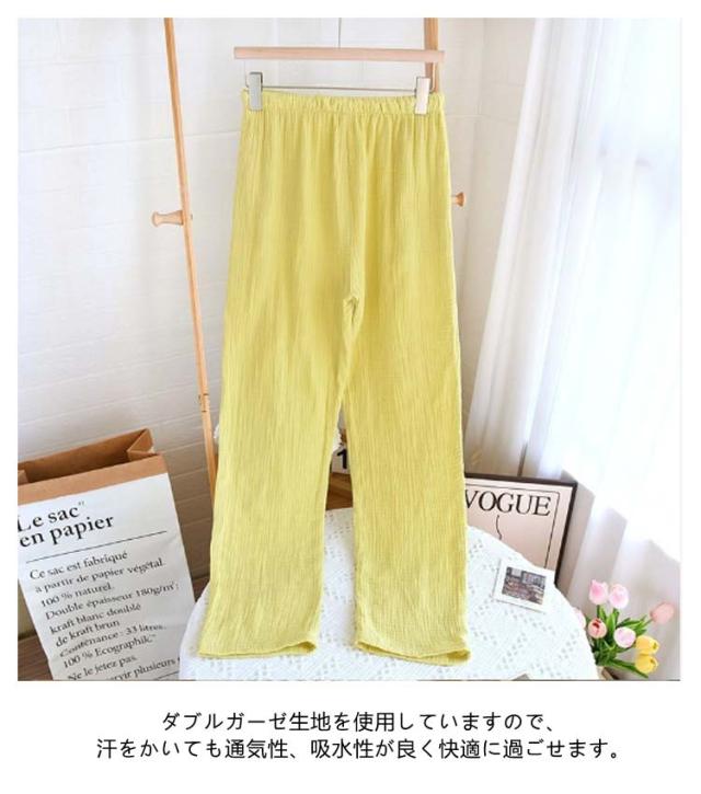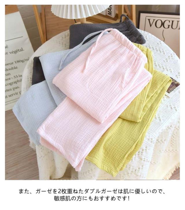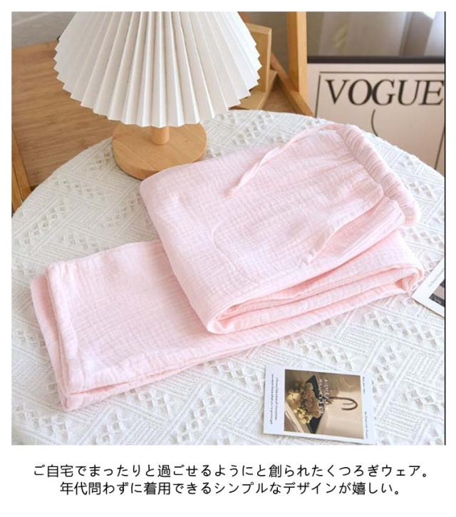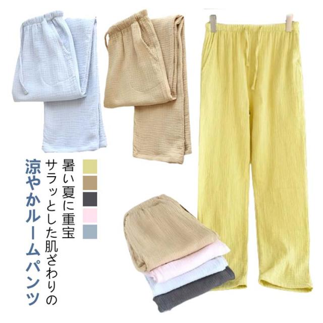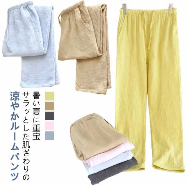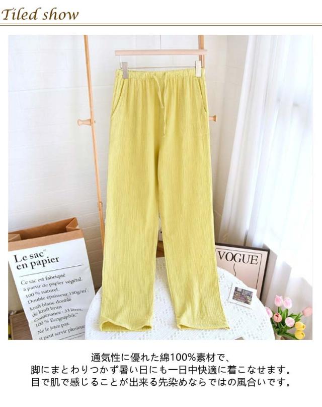 レディース 春夏 綿100 ポケット ダブルガーゼ ルームパンツ ロング丈 綿 涼しい ルームウェア ステテコ コットン 部屋着 ゆったり おしゃれ 大きいサイズ 薄手 ワイドパンツ ルームパンツ 無地 長パン ズボン 肌着 コットン100 敏感肌 夏用 女性