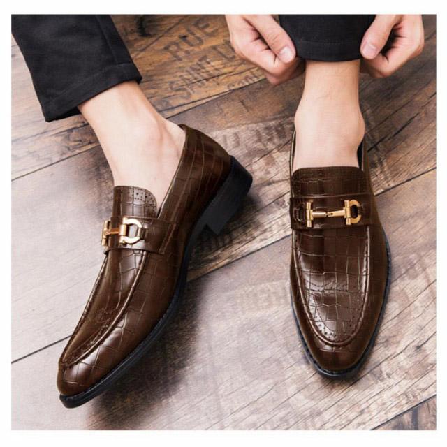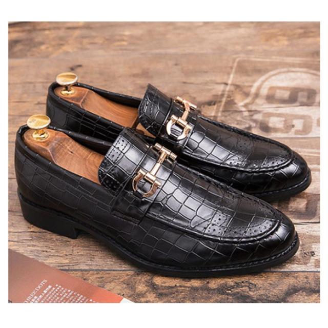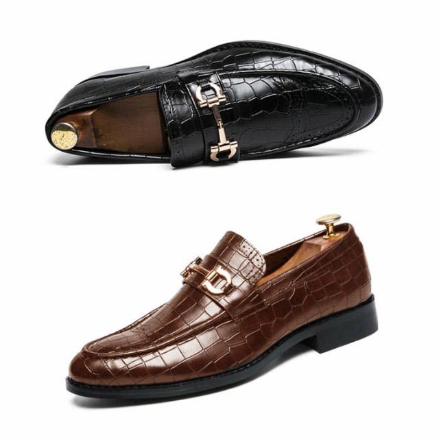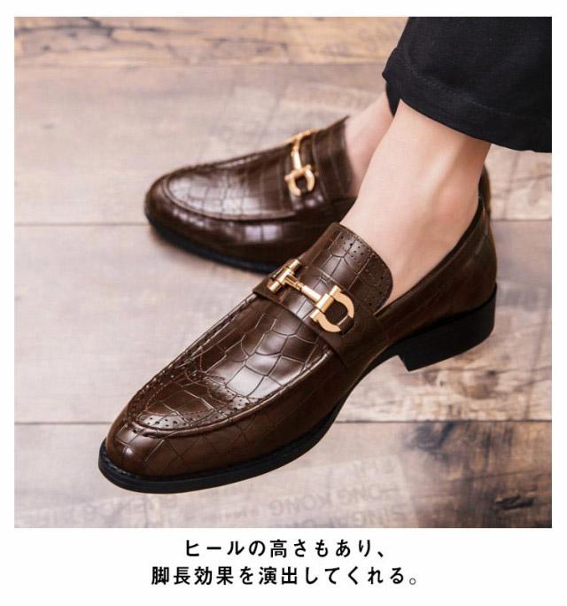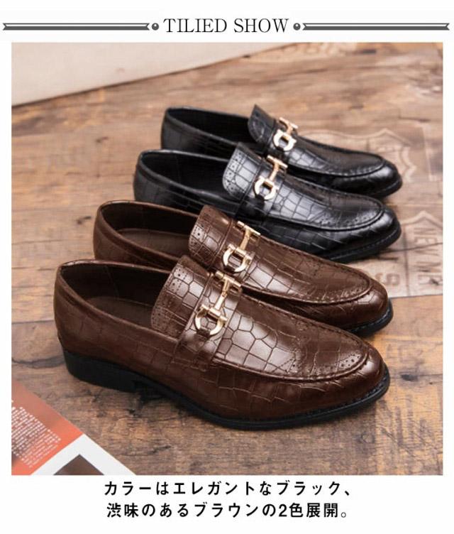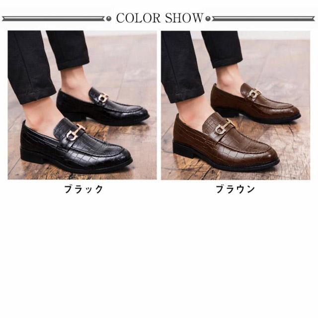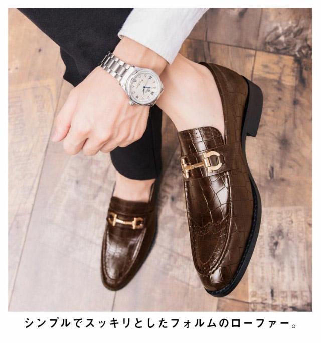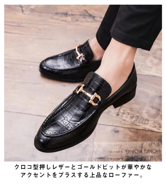 ローファー メンズ ビットローファー クロコ革調 ローヒール スリッポン 革靴 高級感 ビジネス フォーマル 結婚式 卒業式 入学式 合皮 エコレザー メンズシューズ 秋 全2色