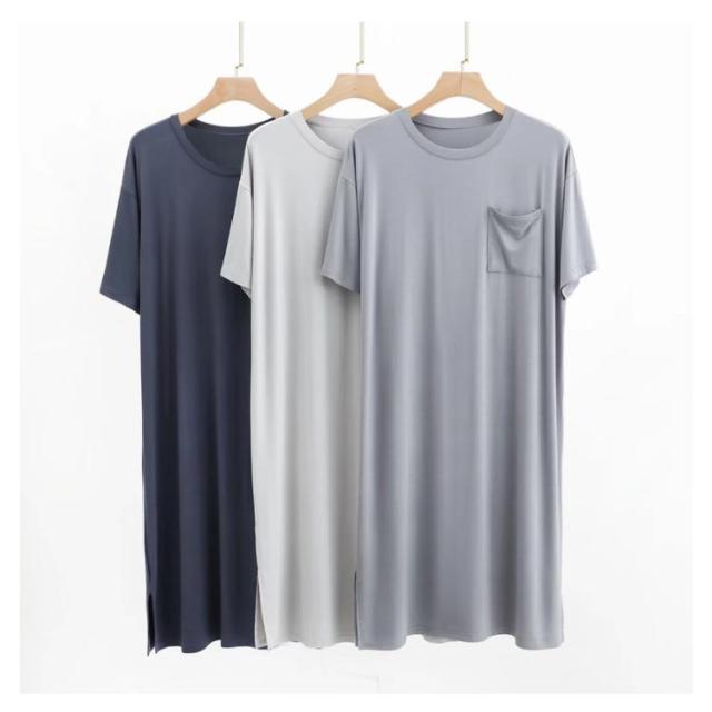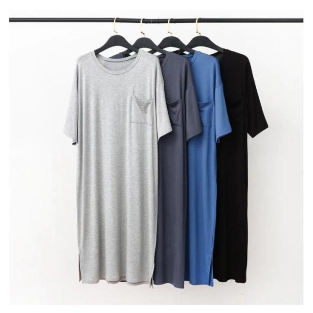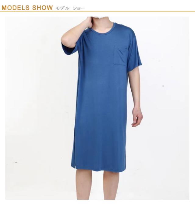 | メンズ夏用uネックワンピースタイプのパジャマ 肌に優しいモデールの素材で、心地よい、さらりと軽やかな肌触り おしゃれなワンピパジャマはルームウェア、部屋着としてはもちろん、ホテル、旅行にも便利 | |