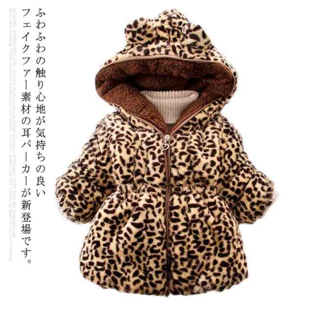 ファージャケット ファーコート 子供 パーカー 裏ボア ヒョウ柄 フェイクファー キッズ パーカー 耳 アウター 冬 秋冬 アウトドア フリースジャケット 子供 アウトドア 女の子 男の子 羽織 子供服 防寒 暖か