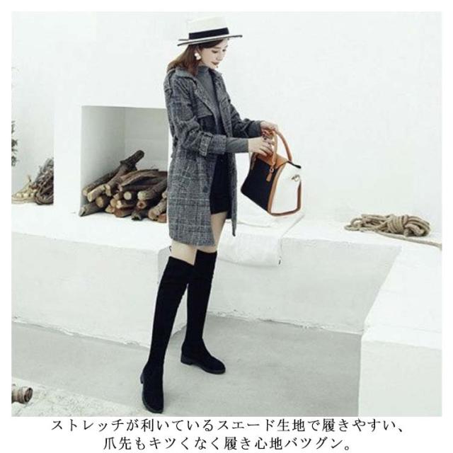 | ほど良い高さで安定感抜群、トレンド感たっぷりのニーハイブーツ。 ストレッチが利いているスエード生地で履きやすい、爪先もキツくなく履き心地バツグン。 足の部分はショートブーツのように型があるため、足を入れても型崩れせずに履けます。 ふくらはぎ部分の膨らみもなくストレートに近いスッキリシルエットで美脚効果アップ! 裏起毛&起毛無しの2タイプから選んでいただけ、年中活躍します。 | |