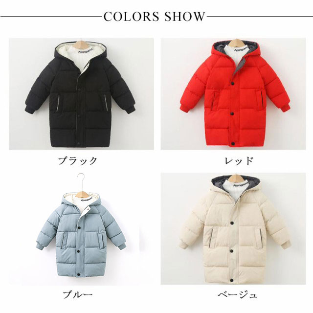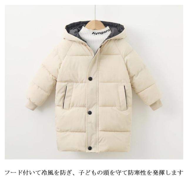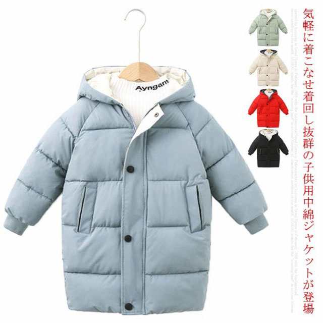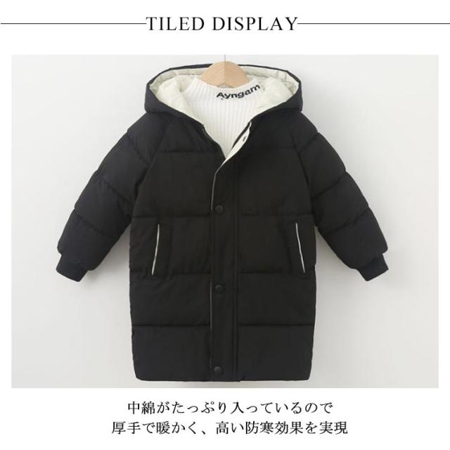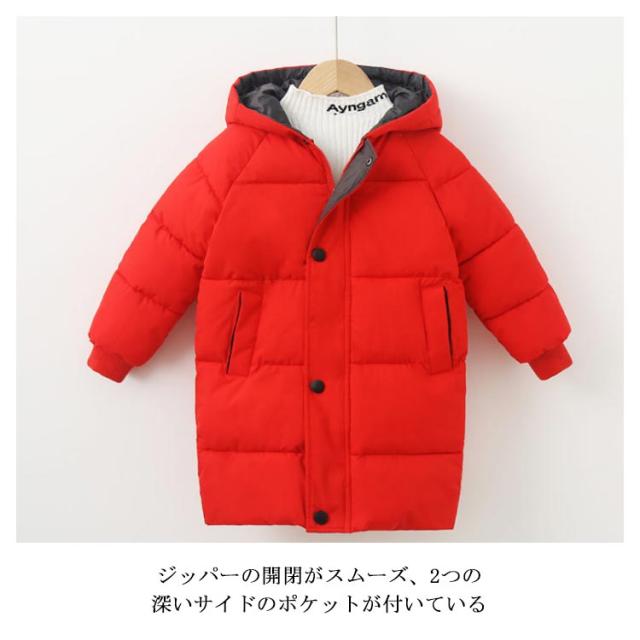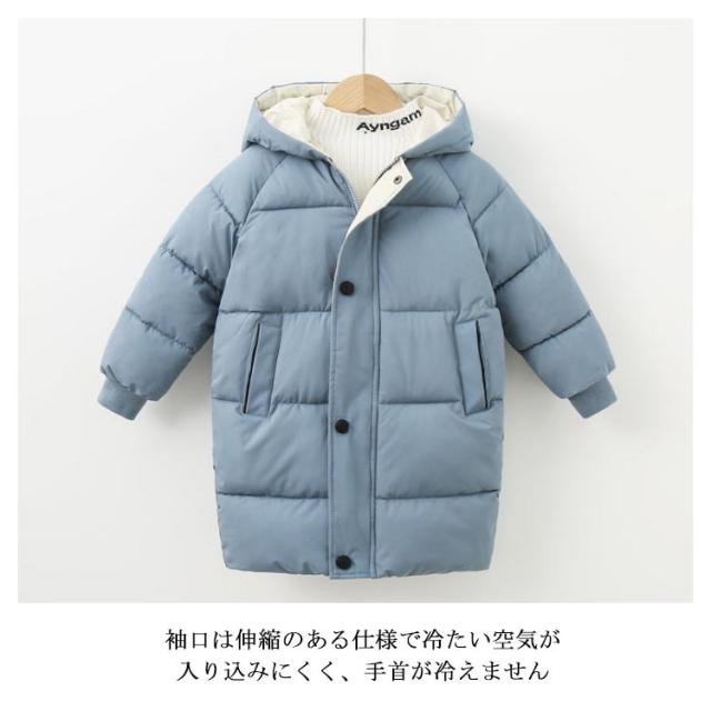 子供服 中綿 ジャケット 厚手 暖かい 冬用 男の子 女の子 キッズ アウター ロング丈 ベビー服 フード付き 無地 防寒 ブルゾン 保温 コート あったか 男児 女児 110 120 130 140 150 ジュニア