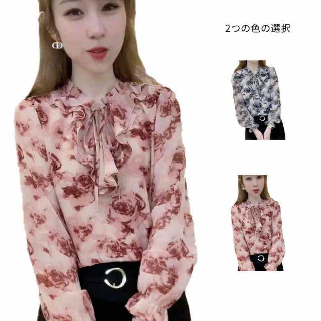 フォーマルブラウス おでかけ オシャレ レディース 春夏秋 シャツブラウス ブラウス 花柄シャツ 花柄ブラウス おしゃれブラウス 着やせ トップス ゆったり 花柄 シンプル 長袖 大きいサイズ カジュアル 送料無料 送料無料 フリルブラウス