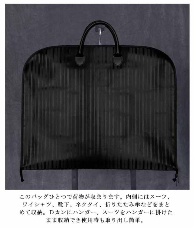 | 出張の多い多忙なビジネスマンの移動を少しでも楽にしたいという気持ちから開発された、ガーメントバッグ! 【収納力抜群】このバッグひとつで荷物が収まります。内側にはスーツ、ワイシャツ、靴下、ネクタイ、折りたたみ傘などをまとめて収納。Dカンにハンガー、スーツをハンガーに掛けたまま収納でき使用時も取り出し簡単。 【耐久性に優れ】大切な服をホコリや汚れからしっかり守って、安心して保管できます。 スーツにしわをつけることなく運ぶために必要なガーメントケースです。 【優れた撥水性・防汚性】水をはじく撥水加工がされているので雨の日の移動も安心。 雨や水に濡れても、乾いた布で拭き取って乾かせば問題なくご使用頂けます※完全防水ではありません。ファスナー、縫い目等から浸水する場合がございますので、ご注意ください。 【高密度ファブリック】最高級の高密度ファブリックをふんだんに使用することにより、高い撥水性を実現しました。お客様に長くつかっていただくために、汚れの付着を防ぎます。 【双方向ファスナー】双方向ファスナーを採用してから、スーツカバーを開閉する時に操作しやすくなります。 【大活躍】出張、就活、結婚式、冠婚葬祭等、あなたの大切な衣類をシワから守ります。プレゼントとしても最適! | |