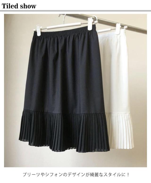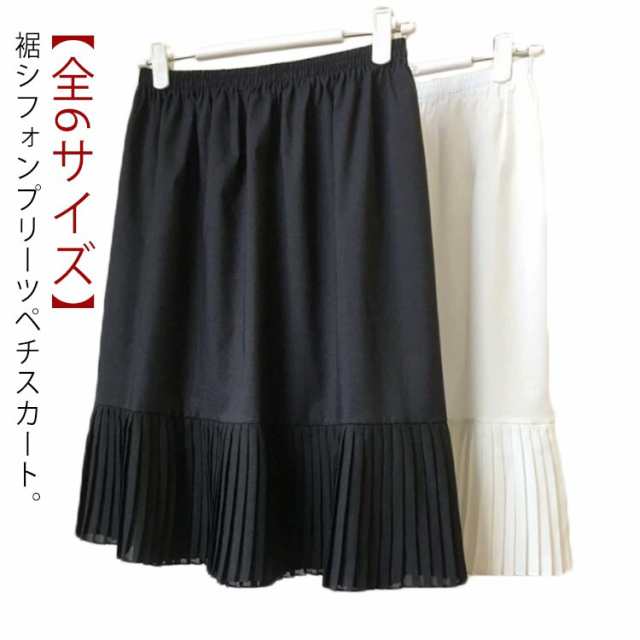 スカート ロング ペチコート ロング丈 ペチスカート 重ね着 白 体型カバー スカート プリーツ レイヤード 裾シフォン 浴衣 【全6サイズ】 黒 下着 ウエストゴム 春 夏 秋 お洒落 着物 ロング きれいめ インナースカート