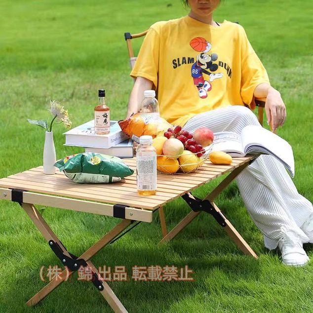 アアウトドアテーブル ウッドロールテーブル 折り畳み 木製 ローテーブル レジャー キャンプ ピクニック バーベキュー 錦 収納袋 組み立て簡単 携帯便利