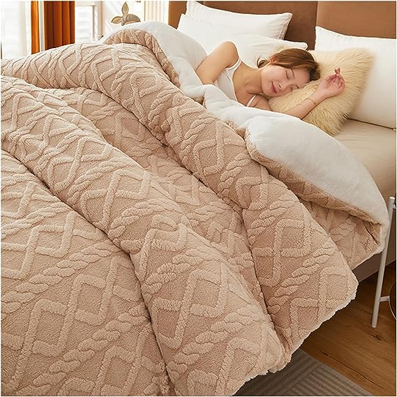 厚みのある非常に柔らかい冬用キルト: 良質な睡眠は健康の重要な部分です。天然繊維を使用した高品質な羽毛布団です。呼吸ができ、安定した睡眠温度を提供します。寒い冬にアレルギーを起こしやすい人に最適です。両面の暖かさ:冬のキルト/ブランケットの両面の暖かさ、Aバージョンは厚くて暖かいタフタベルベット生地、Bバージョンは快適で柔らかいラムウール生地、厚くて柔らかい生地が豪華な暖かさを提供します。強い暖かさで、冬の間ずっと暖かく保ちます。3次元キルティングプロセス:冬の掛け布団はキルティングと正確なウェーブステッチを採用し、詰め物が滑らかな状態を保ち、隙間や塊を避けます。科学的な分割、圧力の分散、暖かさのロック、繊細で緻密、滑らかで美しい、ランニングベルベット現象なし。高品質の詰め物:非常に柔らかい全羽シルクコットン。優れた弾力性、高い嵩高性、柔らかく通気性があります。冷気の侵入を効果的に防ぎ、素早く加熱して暖かさを保ちます。吸湿、熱サイクル、定温維持。 ウィンター ブランケットは、冬の間ずっと持続可能な暖かさを提供します。