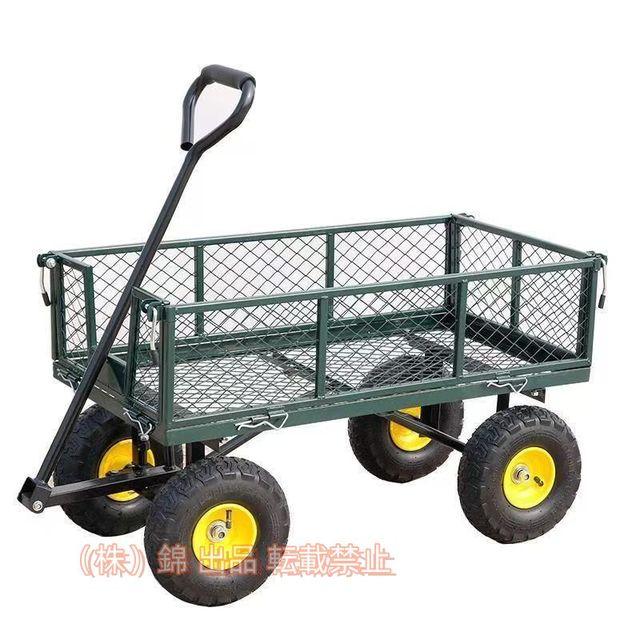 【耐久性抜群】高品質なスチールメッシュ素材で作られたヤードワゴンカートです。パウダーコーティングで加工し、防水防塵性能がぱっちり!【一体化して180°回転可能なハンドル】頑丈で、操作便利な一体化するハンドル、180°回転できて素早い、快適な動きが実現できます。安定性やバランスも優れます。【畑でも動きやすい空気ダイヤ】空気ダイヤの弾力性、耐衝撃性、ノイズリダクションは優れるで、畑作業でも楽に操作できます。大きなホイールは付き、様々な道が適合しています、良好な負荷運搬も特徴の一つです。ご注意:生産により、タイヤは黄色、緑の2種類があり、選ばれず、ランダムに出荷されます。【満足できる大容量】カートを外せるの構造で、運ぶ要求により、自由に形を調整できます。カゴを外して、台車としても使えます。【用途が幅広い】工場、庭、農業用など作業用に最適です。空気ダイヤを採用し工場部品や土、木材などの運ぶは楽になす。作業用以外に買物、砂浜、ピクニックも適合しています。