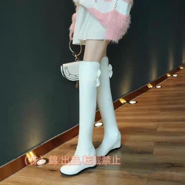ニーハイブーツレディースハイヒールエンジニアブーツ蝶結びロングブーツシンプルウェッジソールインヒール株式会社錦ストレッチブーツお洒落エレガント