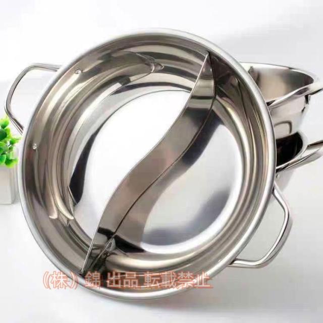 両手鍋 仕切り 二食鍋 S形鴛鴦鍋 しゃぶしゃぶ鍋 中華火鍋 ステンレス 株式会社錦 調理器具 IH対応 直火対応 蓋付き 多人用