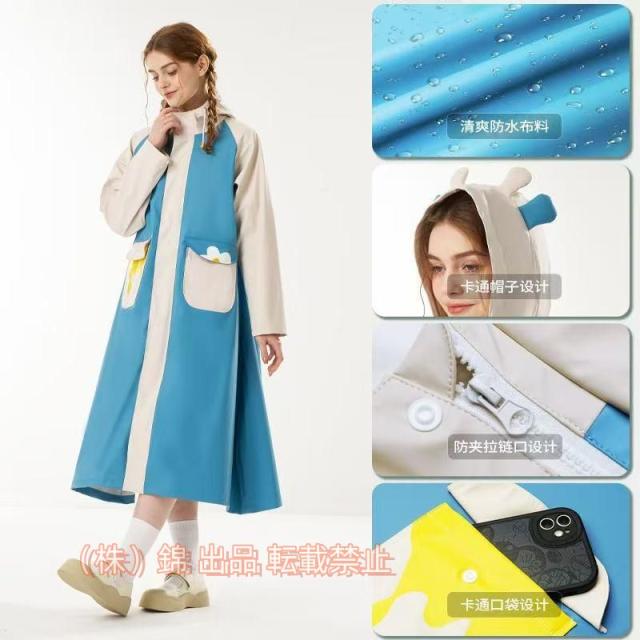 【魅力性】ふんわりとしたキュートなフォルムが印象的なアイテムです。雨の日もおしゃれなコーディネートを楽しむことができます。スムーズに着脱できるオープンファスナーを採用、急な雨でもサッと着ることができます。