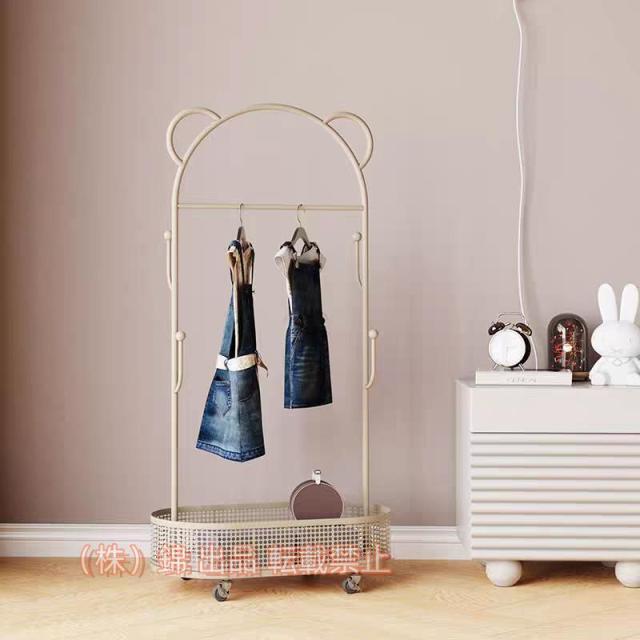 キッズハンガー ラック 子供用 成人用 おしゃれ コート掛け 洋服掛け コンパクト 衣類収納 玄関 株式会社錦バスケット付 フック付 キャスター付 頑丈 かわいい
