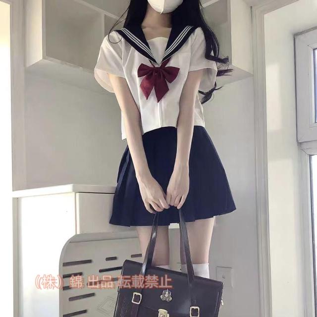 セーラー服 半袖 長袖 ブラウス プリーツスカート 丈長め 膝丈 正統派 女子制服 単品 セットアップ 女子高校生 JK制服錦 蝶ネクタイ付き 本格制服 関西襟 紺