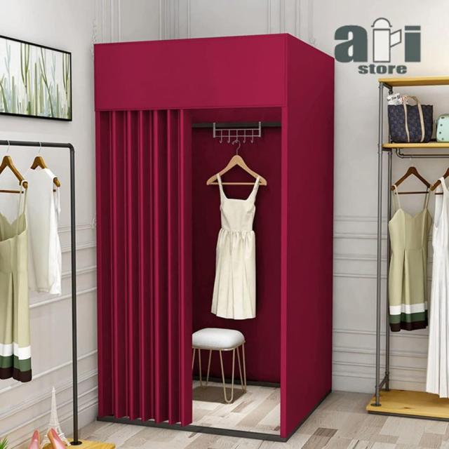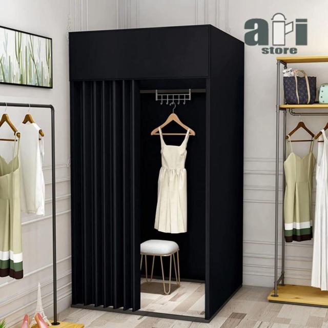 フィッティングルーム試着室更衣室一時的なポータブル更衣室衣料品店洋服店簡易フィッティングルーム株式会社錦フック付き厚めの遮光布鋼管高強度フレーム組み立