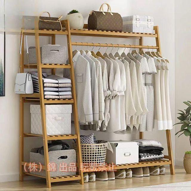 ハンガーラック 天然竹製 ワードローブ クローゼットポールハンガー 強力な耐荷重能力 おしゃれ 洋服掛け スタンド 押入れ収納 錦シングル衣類収納 頑丈大容量