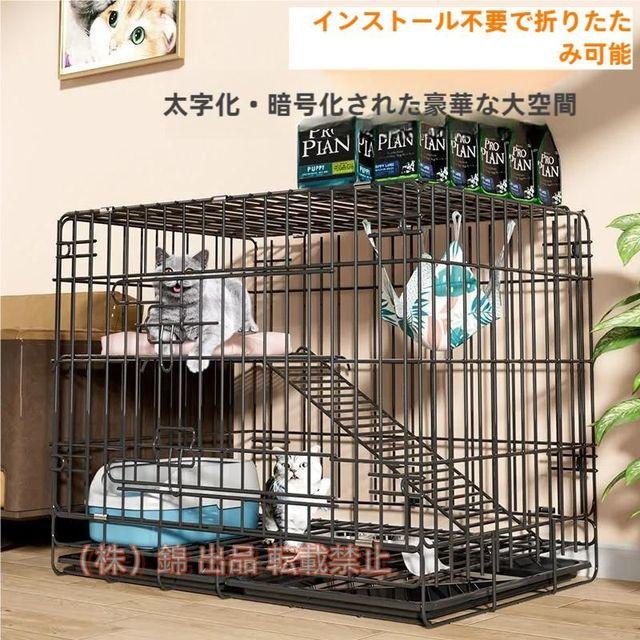 猫用ケージ 大型 多頭飼い キャスター 付き ステップ台2段 脱走防止 簡単組み立て 室内用 ペット用品 掃除しやすい 株式会社錦折りたたみ ドア付き