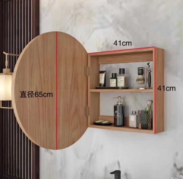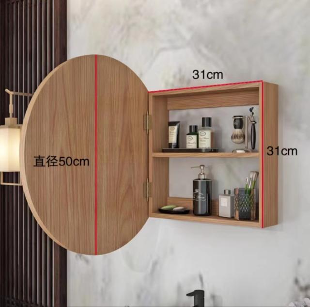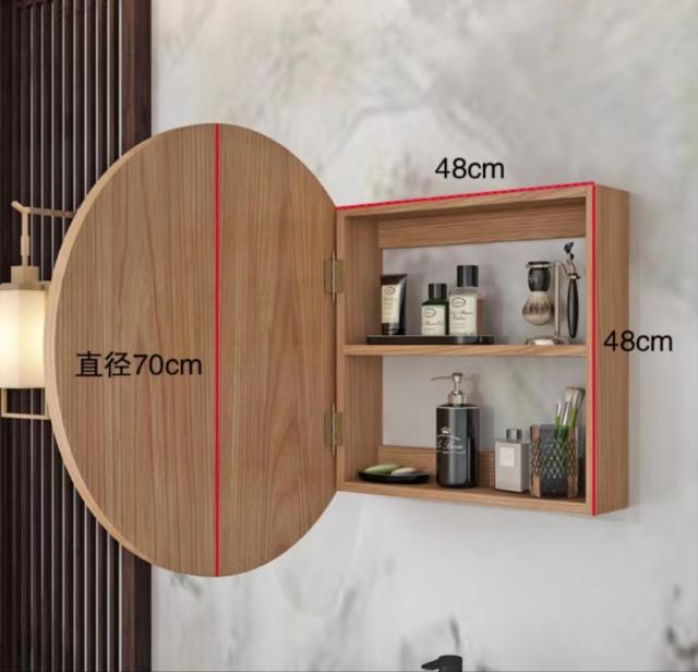 バスルームラウンドミラーキャビネット無垢材のバスルーム壁掛けミラーボックス鏡付き照明付き薬棚内部ミラー付き収納ウォールキャビネット錦バスルームウォー