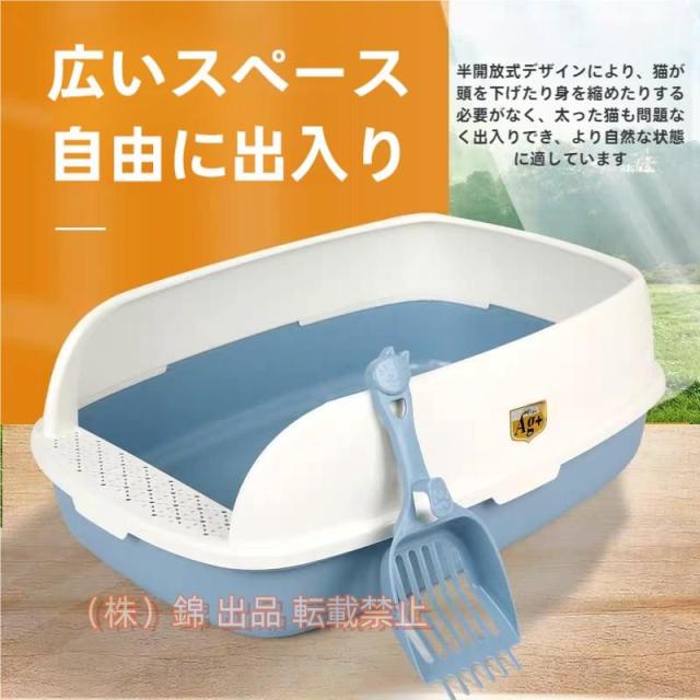 猫トイレ 大きい ネコ 砂 小型 大型 猫 トイレ 四角 におい対策 猫砂 大容量 シンプル 開放式 飛び散り防止 猫用 ネコ用品株式会社錦 スコップ付き 清潔