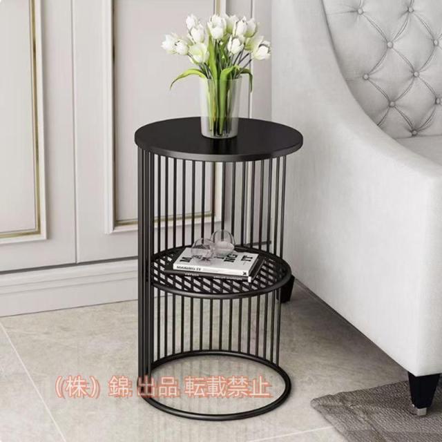 サイドテーブル大理石テーブルおしゃれゴールドサイドテーブル玄関モダン錦高級花台収納ベッドサイド丸型錬鉄北欧(ダブルブラック+鉄板30x30x55cm)