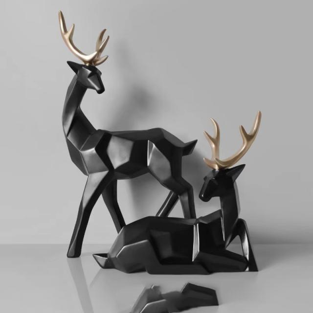 鹿の像家族鹿の置物樹脂彫刻家の装飾株式会社錦トナカイスカンジナビアの家のリビングルームの装飾-ゴールド