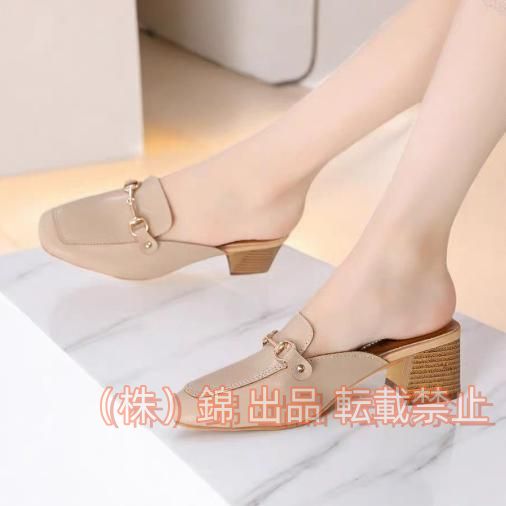 バブーシュサンダル レディース エナメル ミュール ビット付き サボ スリッパ パンプス スクエアトゥ靴 株式会社錦ローヒール かかとなしサンダル シンプル