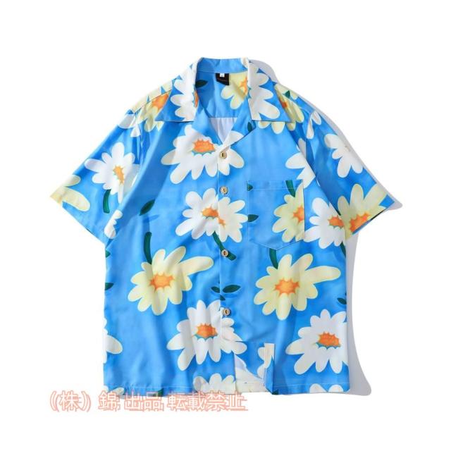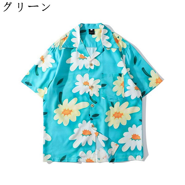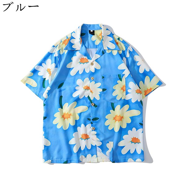 ハワイシャツ アロハシャツ 総柄 メンズ 夏用 半袖 折り襟 サマーシャツ 花柄 プリントシャツ ハワイアン 日焼け止め株式会社錦 薄い かわいい