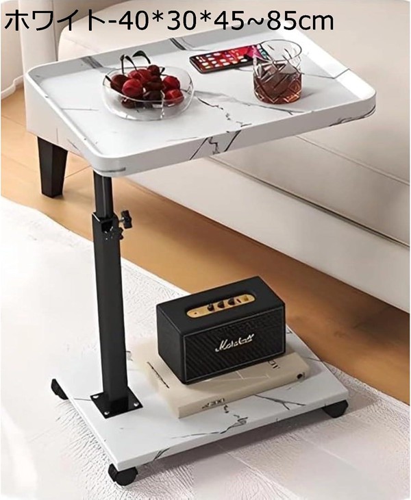 サイドテーブル 昇降式テーブル 360度回転 高さ調節可能 45?80cm 株式会社錦 コの字型 キャスター付き パソコンデスク PCデスク 勉強机