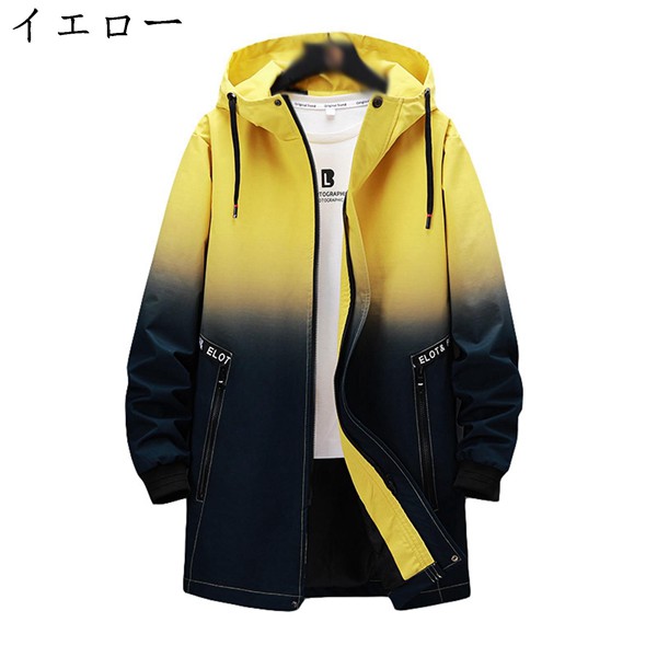ベンチコート 春秋 ジャケット ロング丈 メンズ スプリングコート グラデーション バイカラー カジュアル 株式会社錦フード付き メンズコート 薄手