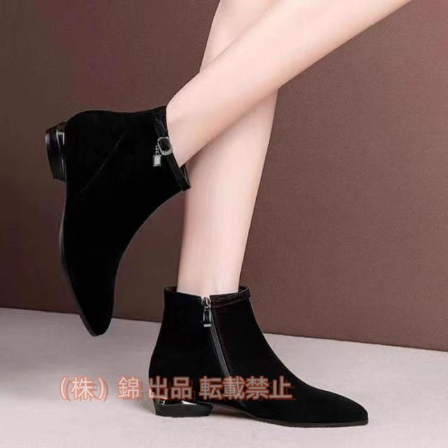 大きいサイズショートブーツ黒サイドジッパーレディースブーツローヒールブーティーハロウィン入学式卒業式袴ブーツ株式会社錦太ヒール歩きやすい2センチ