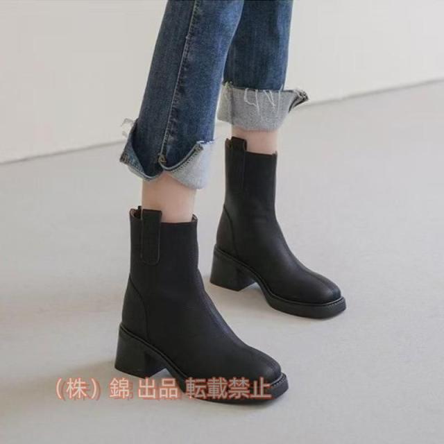 ブーツ レディース ショートブーツ スクエアトゥ ショートブーツ ハーフブーツ ヒール チャンキーヒール ソックス ブーティー 靴 錦太ヒール ローヒール 5cm