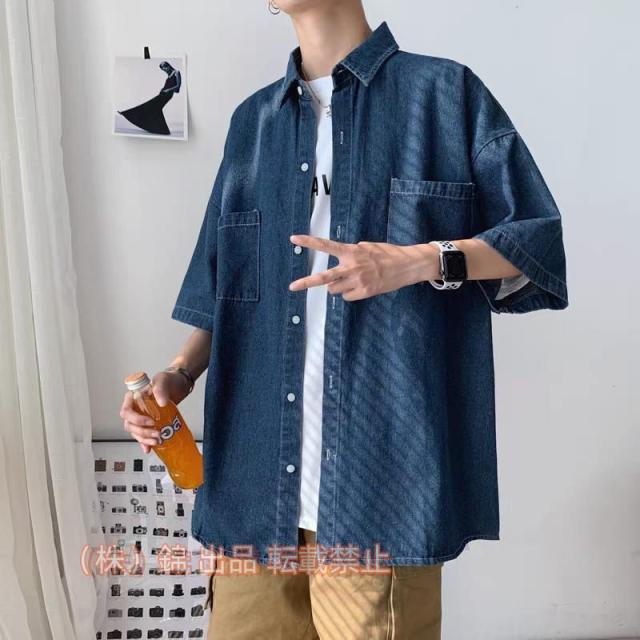 デニムシャツ メンズ 半袖 シャツアウター カジュアルシャツ ルームウェア 重ね着 開襟 アメカジ 羽織り 株式会社錦 ゆったり 夏 通学 通勤 おしゃれ