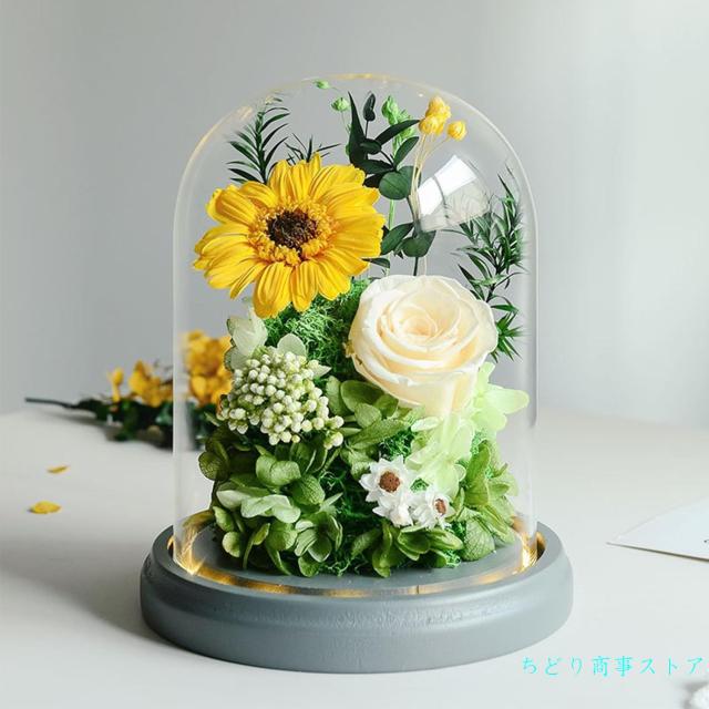 プリザーブドフラワーガラスドームプレゼントバラ枯れない花向日葵仏花仏壇用LEDライト光るフラワーギフト錦誕生日プレゼント母の日父の日敬老の日