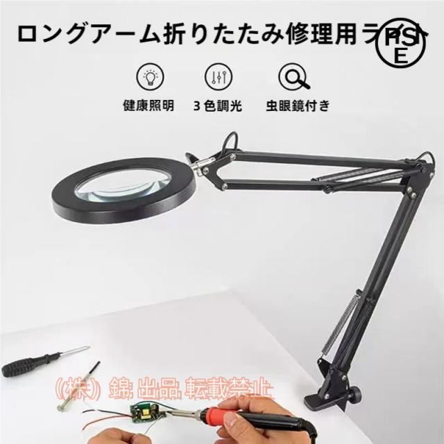 拡大鏡スタンドルーペクリップ式倍率10倍レンズ直径10.5CMLEDライト付き360°角度調整可能読書新聞地図ジュエリー手芸株式会社錦虫眼鏡USB給電父の日