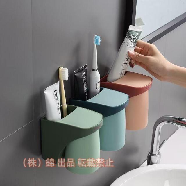 歯ブラシスタンド ホルダー 洗面台収納 コップスタンド マグネット掛け式 洗面所 錦 バスルーム収納 壁掛け 粘着式 壁掛け カップル用家庭用 浴室 風呂収納